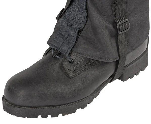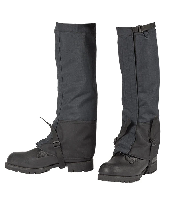 - Gaiters are secured on top with 3/4″ wide FR webbing & buckle